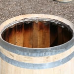 Wichtig: Wenn das Fass nicht mit Wasser in Kontakt kommt schrumpft das Holz etwas ein die Ringe werden dann etwas lockerer. Sobald es nass wird dehnt sich das Holz wieder aus. Dies ist ein ganz natürlicher Effekt.