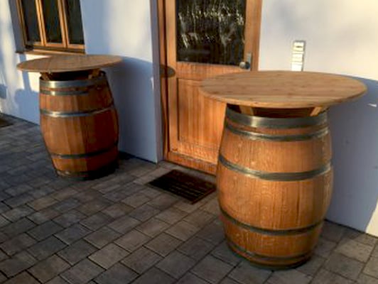 Fass als Stehtisch mit 90cm großer Tischplatte.