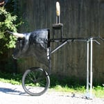 Gesamtlänge mit Stangen ca. 1,40m / Höhe: Boden bis Hörnerspitze ca. 1,08cm / Breite: Kopf mit Hörnern ca. 62cm. Alles zerlegbar: Kopf + Rad abschraubbar und das Gestänge ist klappbar.