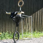 Gesamtlänge mit Stangen ca. 1,60m / Höhe: Boden bis Hörnerspitze ca. 1,20m / Breite: Kopf mit Hörnern ca. 56cm. Alles zerlegbar: Kopf + Rad abschraubbar und das Gestänge ist klappbar.