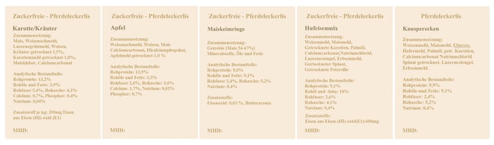 4 x Zuckerfrei und einmal mit etwas Glucose.